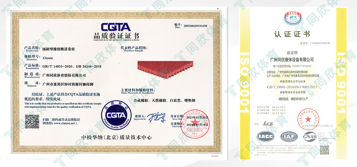 同欣預(yù)制型橡膠跑道的質(zhì)量認(rèn)證
